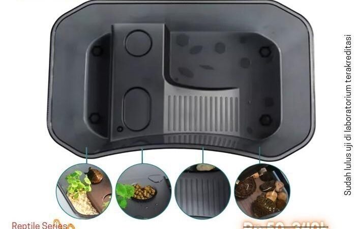 - Habitat Ideal – Dirancang khusus untuk kura air dengan sirkulasi air sempurna dan area berjemur (basking) yang nyaman.
