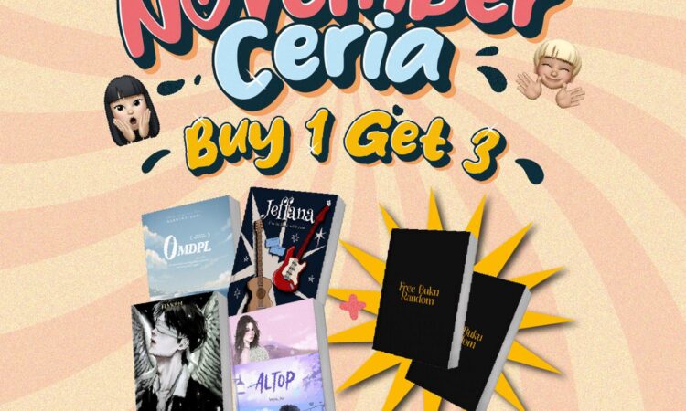 Raih kesempatan istimewa untuk mengembangkan koleksi bacaanmu dengan cara yang paling hemat! Beli 1 novel utama pilihanmu dan dapatkan GRATIS 2 buku random spesial dari JDA Bookstore. Total yang kamu terima adalah 3 buku dengan hanya membayar harga 1 buku saja!