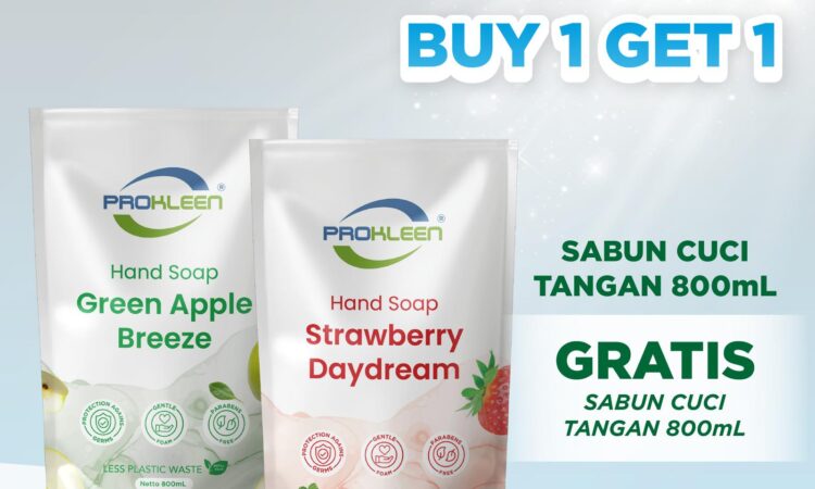 Dapatkan dua botol sabun cuci tangan antibacterial Prokleen dengan harga satu! Pilihan varian aroma segar: Apple dan Strawberry. Sabun ini efektif membunuh kuman dan menjaga kelembutan kulit tangan sepanjang hari berkat pH seimbang (6.5 – 7.5). Formulasi dari Australia menjamin kualitas dan keamanan produk, serta telah terdaftar di Kemenkes RI No. PKD 20309021359.
