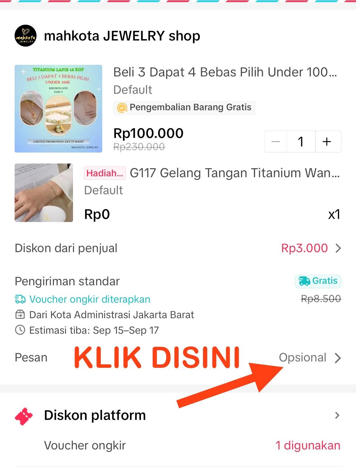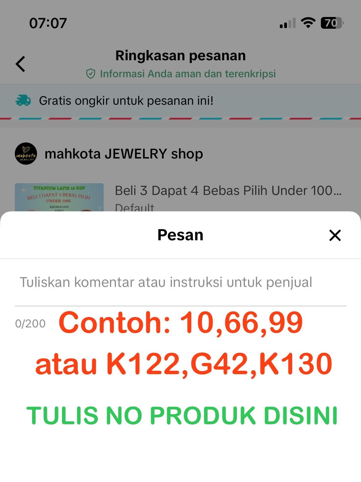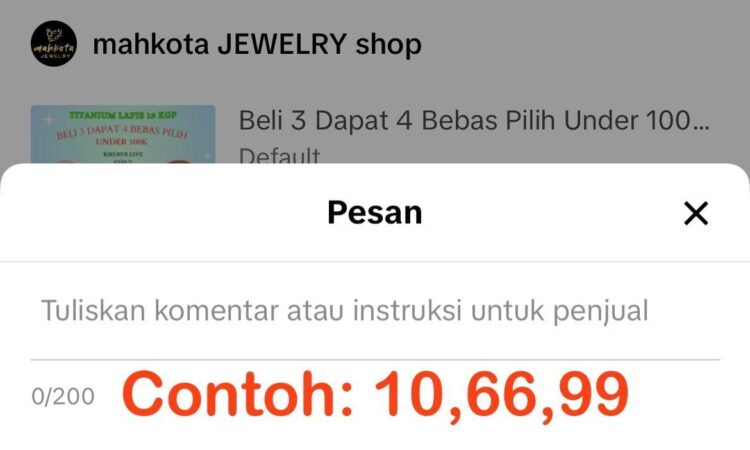 - Saat checkout, tulis nomor produk atau kode SKU di kolom “PESAN”. Contoh: