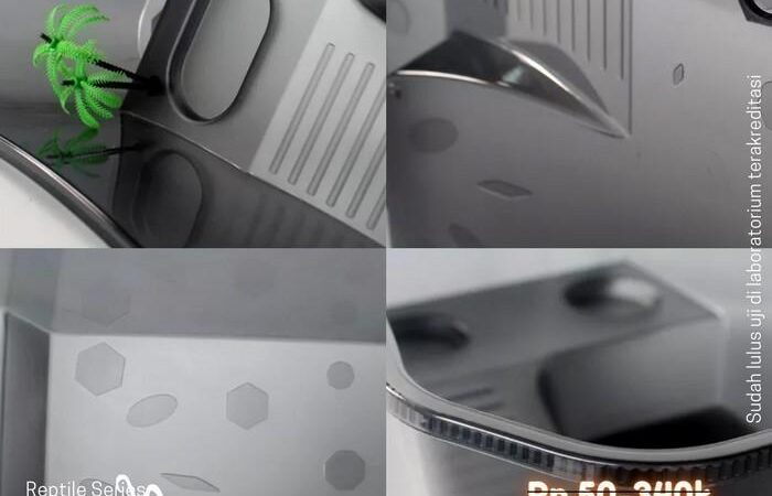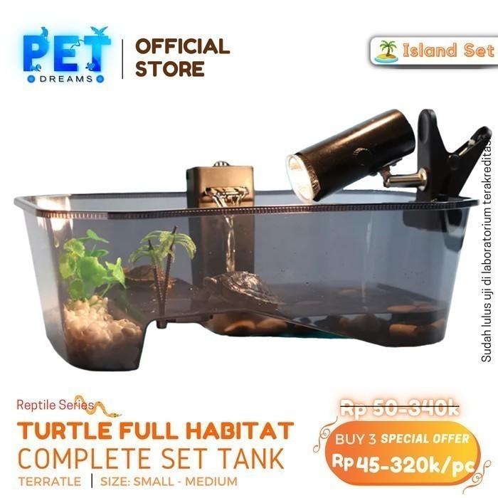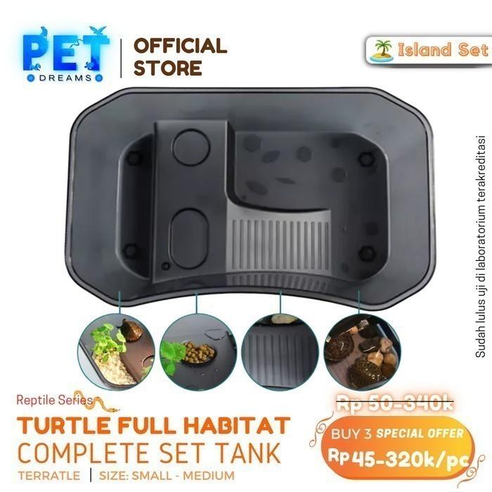 | Fitur Unggulan | – 5 area multifungsi (berenang, berjemur, makan, hibernasi, docking ramp) – Desain transparan untuk pengamatan mudah – Strip anti-selip pada tanjakan – Struktur plastik berbentuk ginjal kokoh |