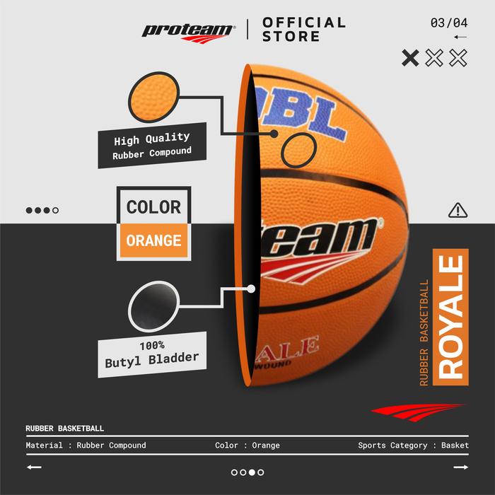 Tingkatkan performa permainan basket Anda dengan Proteam Royale Orange, bola basket berstandar FIBA yang dirancang untuk atlet serius. Terbuat dari material rubber karet berkualitas tinggi, bola ini menawarkan daya tahan luar biasa untuk penggunaan intensif baik di lapangan indoor maupun outdoor. Desain 8-panel-nya memastikan genggaman yang konsisten dan kontrol yang optimal, membantu meningkatkan akurasi dribel dan passing.