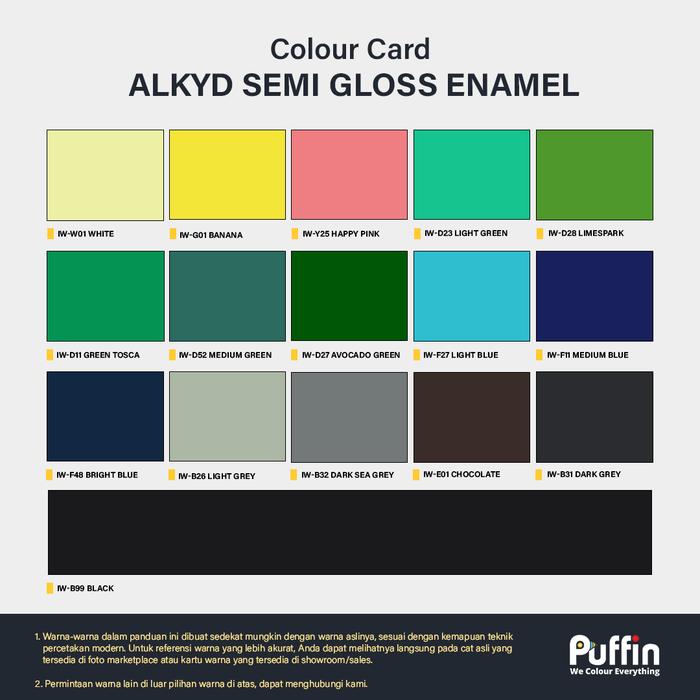 Pemesanan Warna Khusus: Request warna di luar yang tertera min. order 2 pail dengan waktu proses 2 hari kerja.
