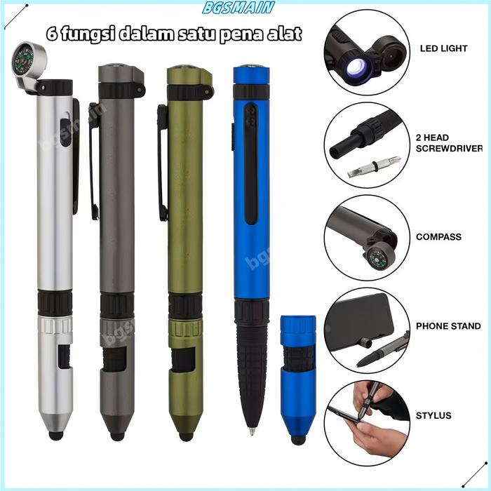 | Fitur Utama | 6 fungsi dalam 1 alat: menulis, kompas, senter, dudukan ponsel, obeng, dan stylus ponsel |