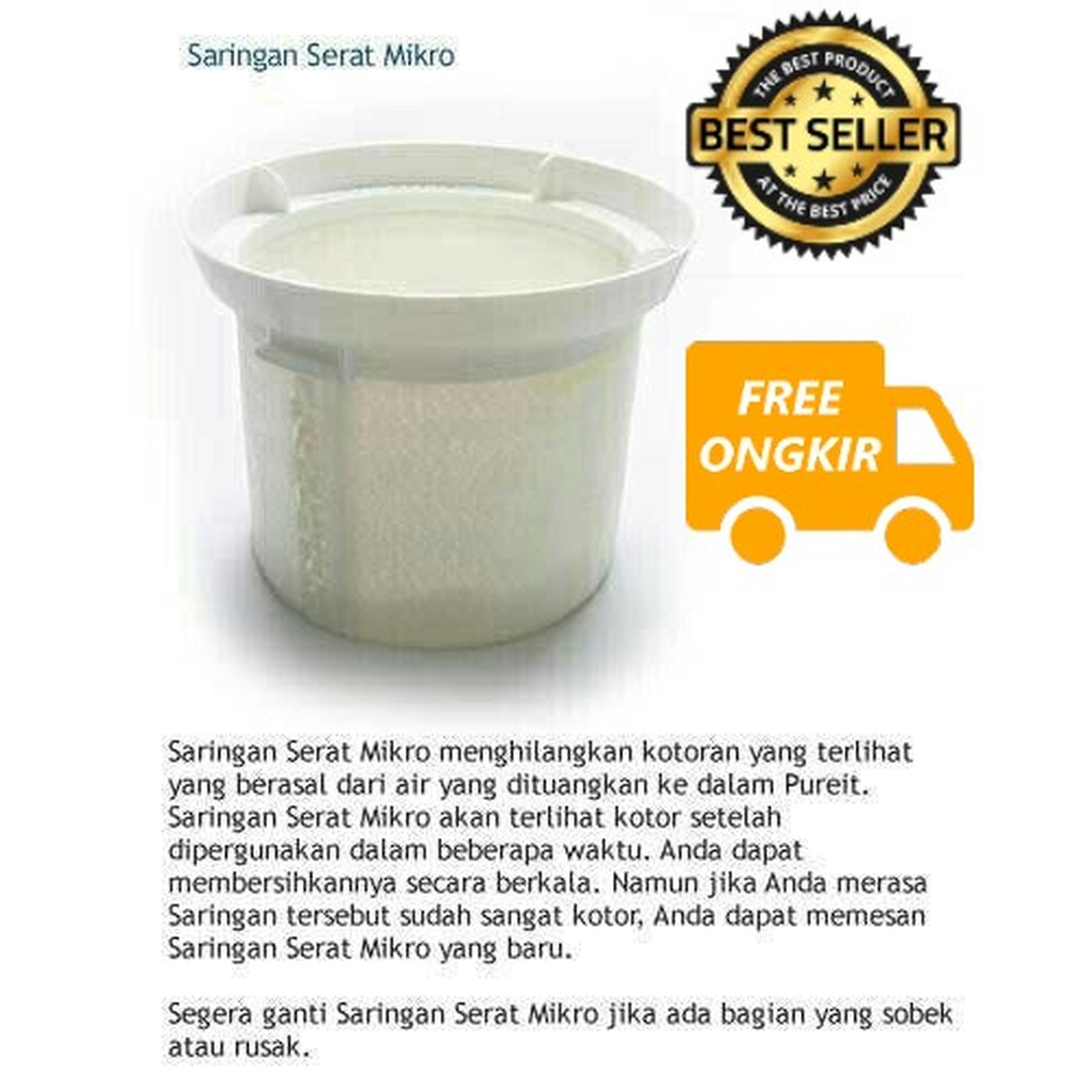 PUREIT Micro Fibre Mesh -M05 adalah filter air orisinal dari Unilever yang dirancang khusus sebagai penyaring tahap pertama untuk water purifier Pureit Classic 9 Liter dan 23 Liter. Filter ini berperan penting dalam melindungi tahap penyaringan berikutnya dengan menjebak kotoran berukuran besar dan partikel mikroskopis yang terkandung dalam air baku, seperti debu, pasir, karat, dan sedotan.