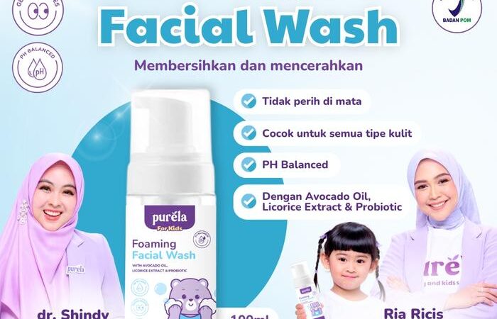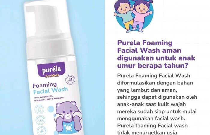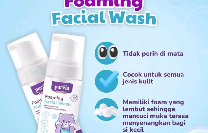 Purela Foaming Facial Wash adalah sabun cuci muka anak dengan tekstur busa lembut (creamy foam) yang membersihkan wajah secara menyeluruh tanpa mengikis minyak alami kulit. Formulanya telah diuji pH balanced, aman untuk semua jenis kulit, dan gentle on eyes, sehingga tidak perih saat terkena mata si kecil.