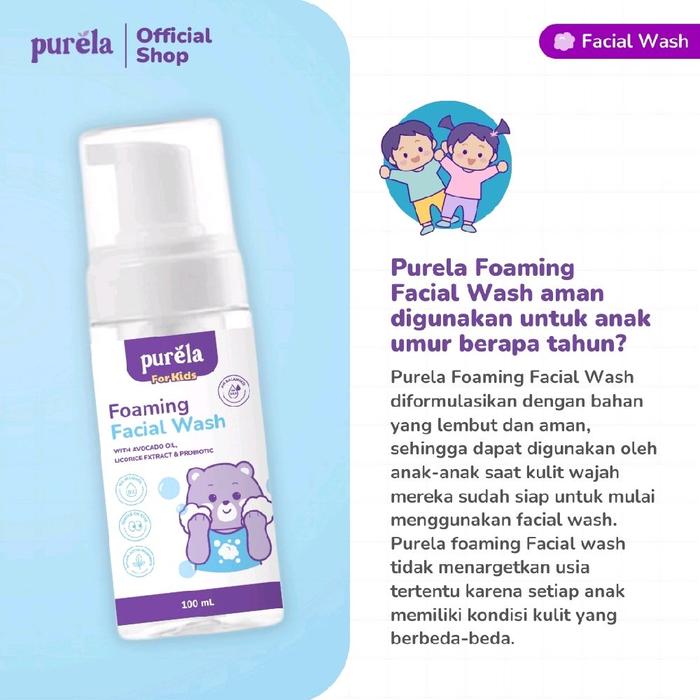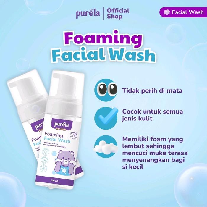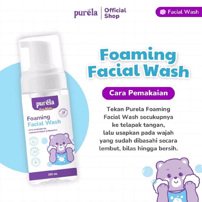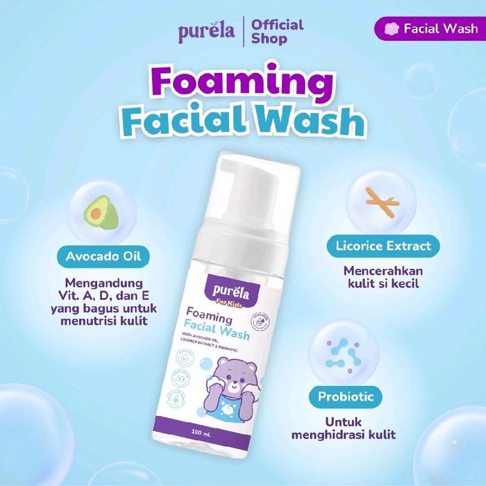 Purela Foaming Facial Wash adalah sabun cuci muka anak dengan tekstur busa lembut (creamy foam) yang membersihkan wajah secara menyeluruh tanpa mengikis minyak alami kulit. Formulanya telah diuji pH balanced, aman untuk semua jenis kulit, dan gentle on eyes, sehingga tidak perih saat terkena mata si kecil.