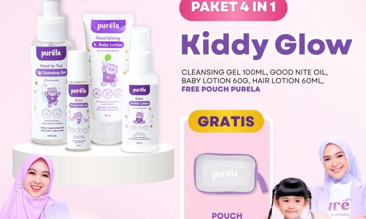 Wujudkan ritual perawatan si kecil yang menyenangkan dan praktis dengan Purela Kiddy Glow Skincare 4in1. Paket lengkap berisi 4 produk perawatan terbaik plus sebuah pouch eksklusif untuk kemudahan Anda. Semua produk telah teruji klinis, terdaftar BPOM, dan diformulasikan khusus untuk bayi & anak dengan bahan yang aman, tanpa SLS, paraben, alkohol, atau pewangi berlebihan.