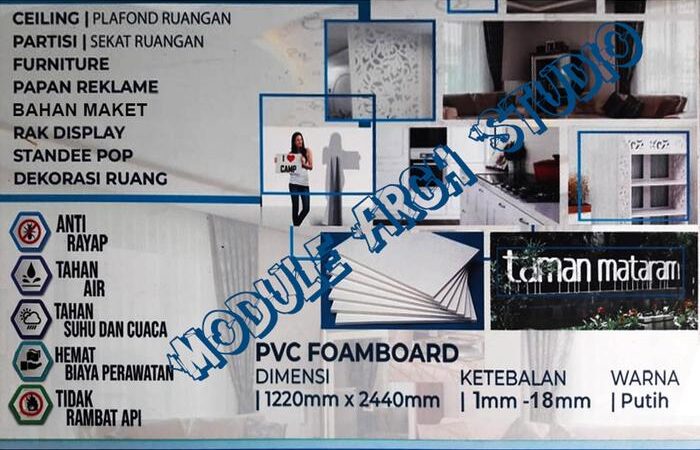 • PVC Sheet: Lembaran PVC yang biasanya lebih padat dan keras dibandingkan foam board, sering digunakan untuk konstruksi, signage, dan aplikasi industri.
