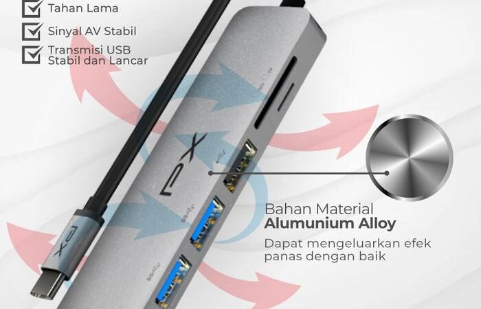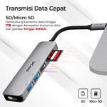 | 6 Port dalam 1 | 2x USB 3.0, 1x USB 2.0, 1x HDMI 4K, 1x Slot SD, 1x Slot Micro SD |