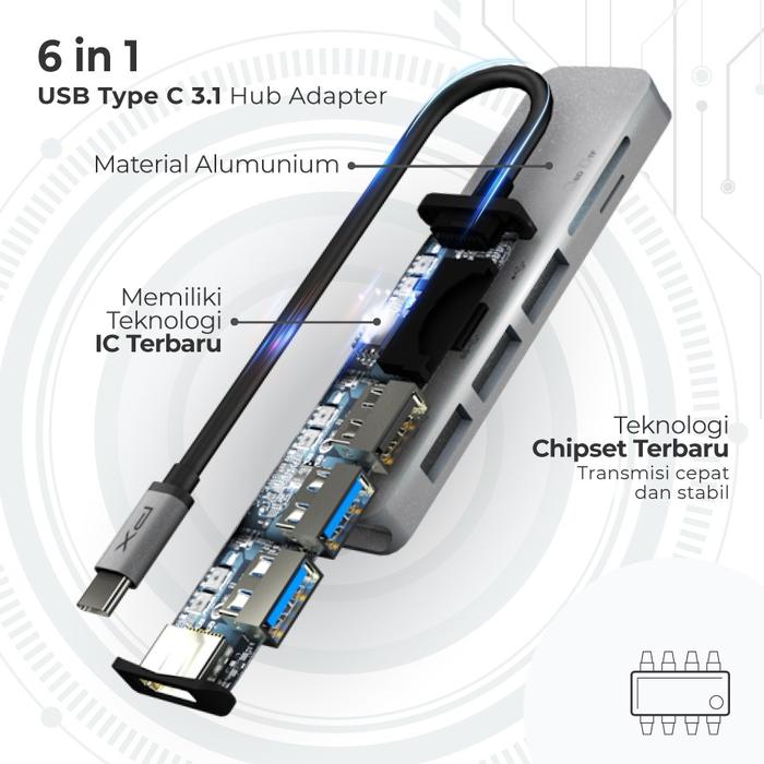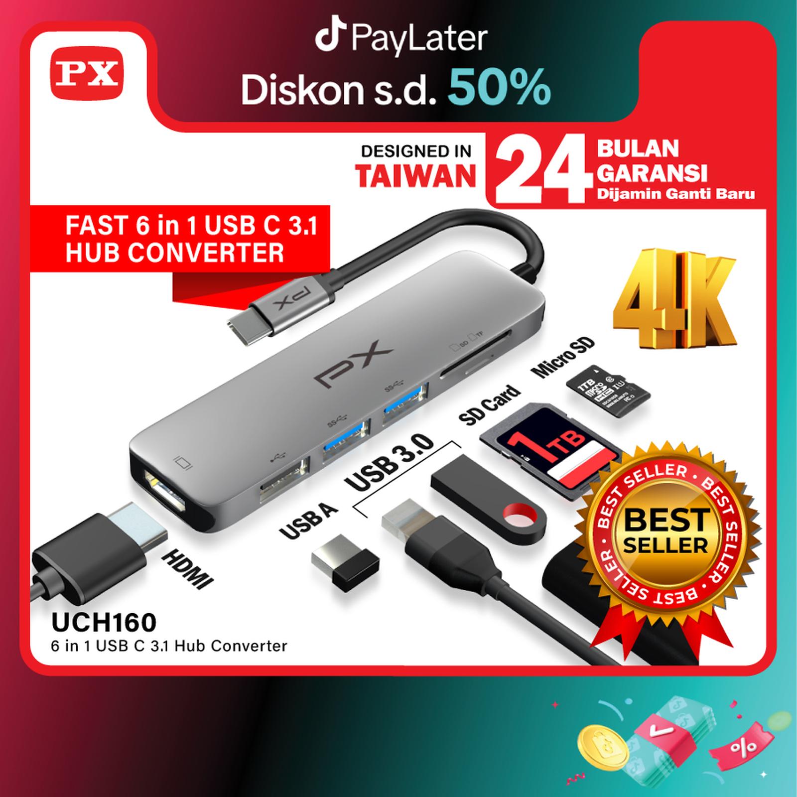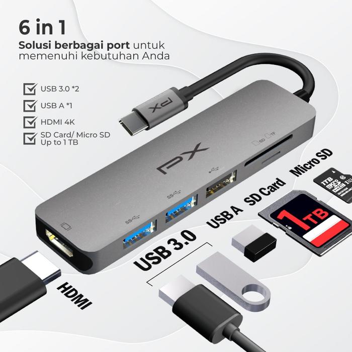 Tingkatkan produktivitas dan hiburan Anda dengan PX UCH160 Hub Adapter. Perangkat multifungsi 6-in-1 ini dirancang untuk mengubah satu port USB-C Anda menjadi pusat koneksi yang lengkap, sempurna untuk MacBook, iPad Pro, tablet, dan laptop modern lainnya. Nikmati kemudahan transfer data super cepat dan pengalaman visual 4K yang memukau.