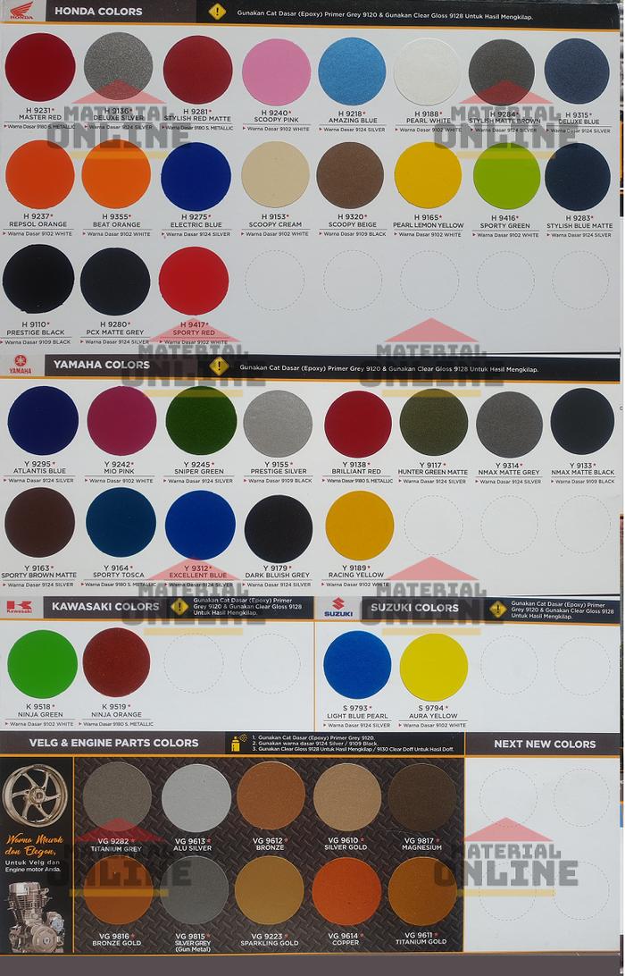 - Clear: Cat transparan yang berfungsi sebagai lapisan pelindung akhir (top coat) untuk memberikan efek kilap (gloss) dan melindungi lapisan warna di bawahnya.