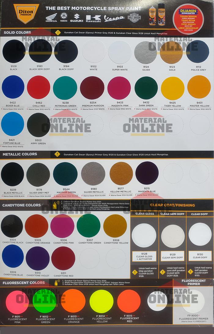 Temukan solusi finishing terbaik untuk berbagai proyek Anda dengan Pylox Pilox Diton Premium Cat Semprot 400cc. Tersedia 92 pilihan warna eksklusif dalam katalog kami, dari warna metalik, matte, hingga candy tone yang memukau. Hasilkan lapisan yang halus, rata, dan tahan lama dengan mudah. Produk ini sangat cocok untuk berbagai media seperti kayu, logam, plastik, dan keramik.