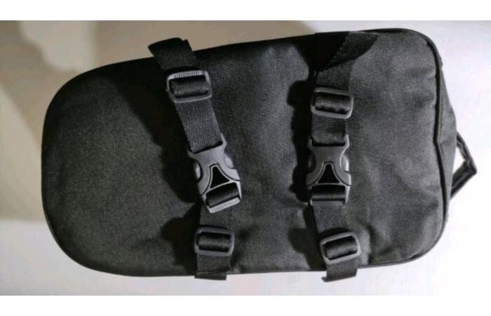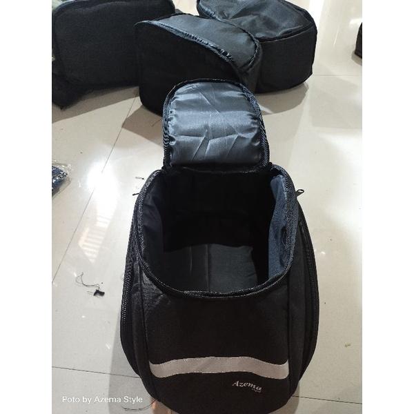 Tas ini didesain dengan sangat fungsional, memiliki satu kantong utama yang luas dan dua kantong samping untuk menyimpan barang-barang penting agar mudah diakses. Fitur unggulannya adalah base form tebal 6 mm yang membuat tas tetap tegak dan tidak mudah melesak, sehingga bentuknya selalu terjaga. Pengait menggunakan tali tebal dan panjang (90 cm) yang dapat disesuaikan untuk mengamankan tas di jok motor dengan sangat kuat.