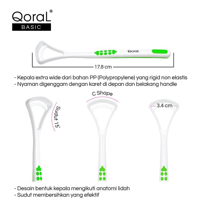 Qoral Basic Tongue Cleaner hadir sebagai solusi khusus untuk kebersihan lidah yang maksimal. Dirancang dengan kepala ekstra lebar (3.4 cm) dan sudut kemiringan 15 derajat untuk memberikan stabilitas dan efektivitas optimal dalam menyapu kotoran. Gagangnya didesain ergonomis dengan grip yang nyaman untuk memastikan pengendalian yang mudah.