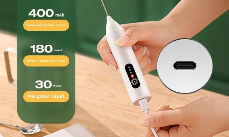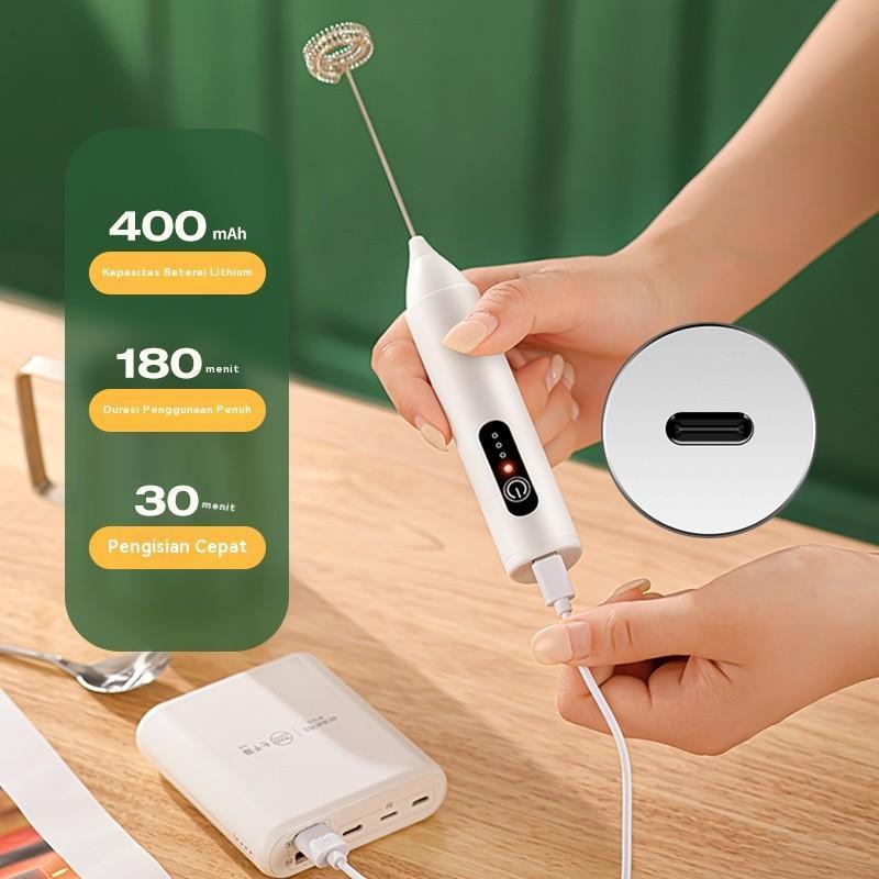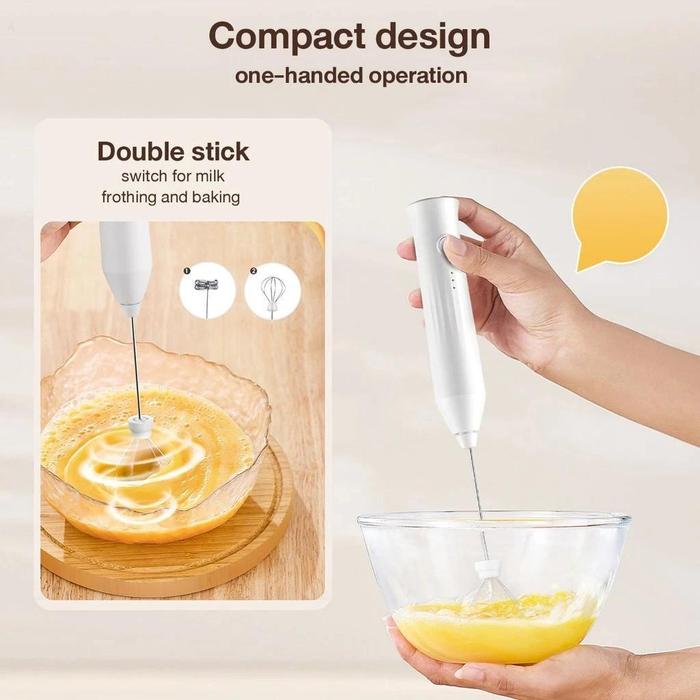 Alat ini sangat multifungsi, tidak hanya untuk memfroth susu tetapi juga untuk mengocok telur, membuat adonan kue, dan mencampur minuman dengan mudah. Desainnya yang ringkas dan ringan membuatnya sempurna untuk dapur kecil maupun perjalanan.