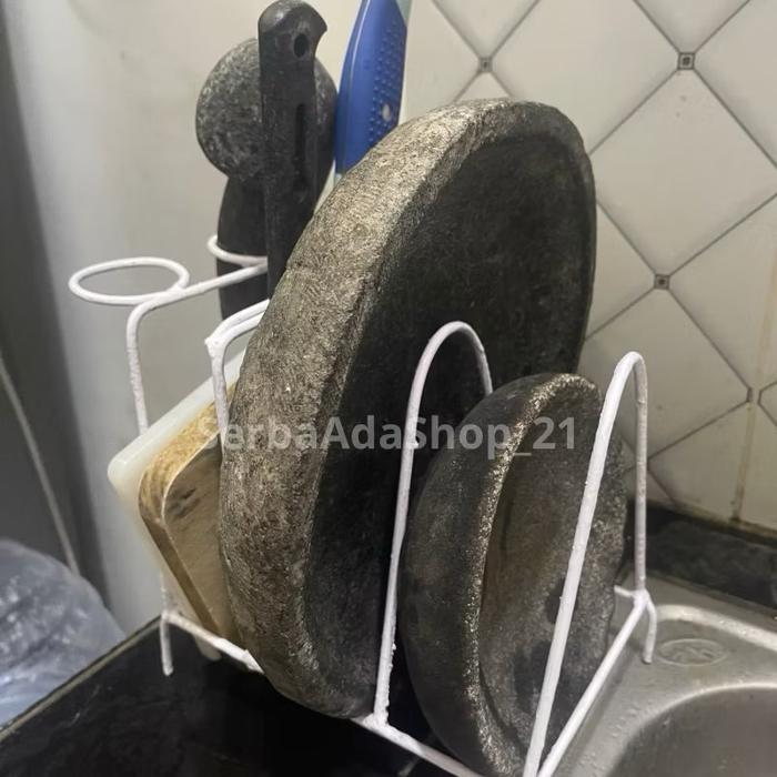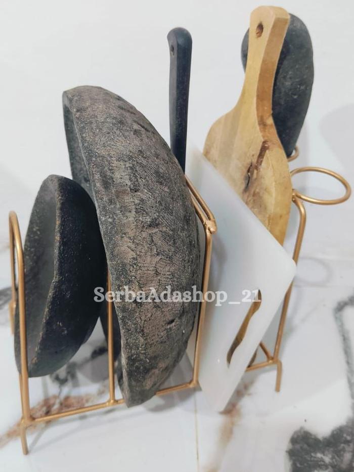 | Desain Multifungsi | Dapat menyimpan cobek, ulekan, telenan, dan pisau sekaligus dalam satu rak. |