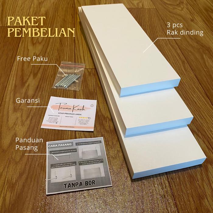 Tingkatkan nilai estetika ruangan Anda dengan set rak dinding minimalis yang praktis dan elegan. Terbuat dari kayu Plywood Export Grade A berkualitas tinggi dengan finishing HPL (High-Pressure Laminate) yang tahan lama dan modern. Desainnya yang ramping dan minimalis cocok menghiasi dinding ruang tamu, kamar tidur, ruang keluarga, atau bahkan dapur sebagai tempat display yang fungsional.