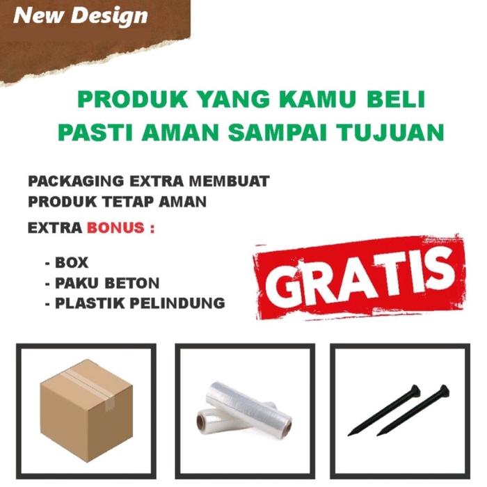 Pemasangannya sangat mudah, cukup dengan palu, dan sudah termasuk semua aksesori yang diperlukan. Permukaan yang kedap air membuatnya tahan noda dan sangat mudah dibersihkan hanya dengan lap. Dikemas dengan hati-hati menggunakan kardus tebal dan bubble wrap untuk memastikan produk sampai dalam kondisi sempurna.
