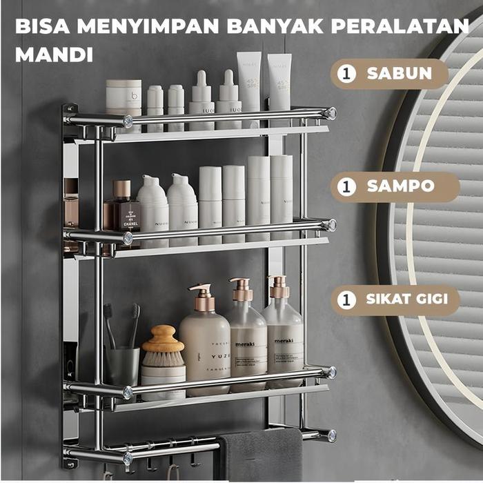 Dapatkan rak kamar mandi stainless steel ini sekarang dan rapikan perlengkapan mandi Anda dengan mudah!