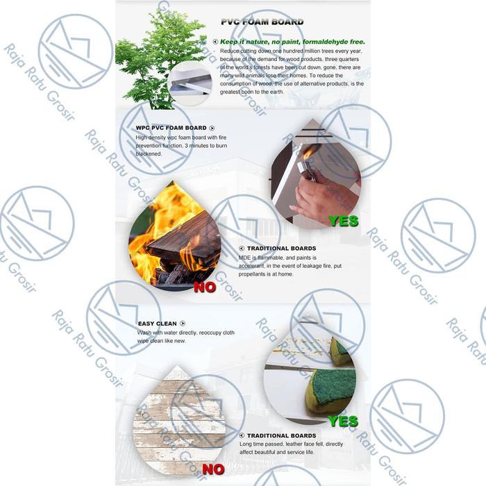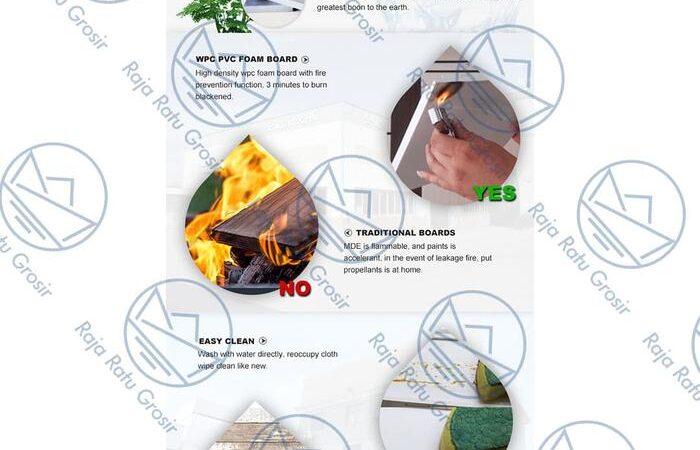 | Material | WPC (Wood Plastic Composite) – Anti air, tahan api, dan mudah dibersihkan. |