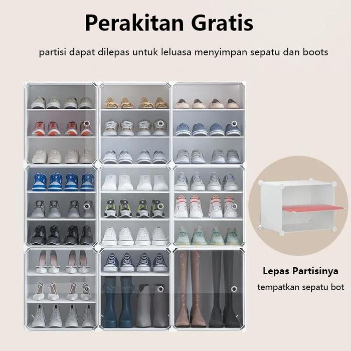 Rak sepatu tertutup ini didesain khusus untuk melindungi koleksi sepatu Anda dari debu dan kelembapan. Dengan struktur lapisan yang kokoh, rak ini memberikan tempat penyimpanan yang rapi dan estetik untuk berbagai jenis sepatu dan sandal. Cocok diletakkan di dekat pintu masuk, lemari, atau sudut ruangan.