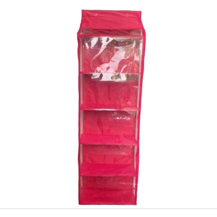 Solusi penyimpanan praktis untuk koleksi tas, sepatu, dompet, boneka, dan berbagai barang lainnya! Dengan 5 susun kompartemen, rak gantung ini membantu Anda mengatur ruang secara vertikal dan efisien.