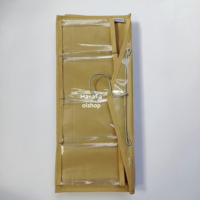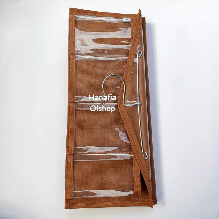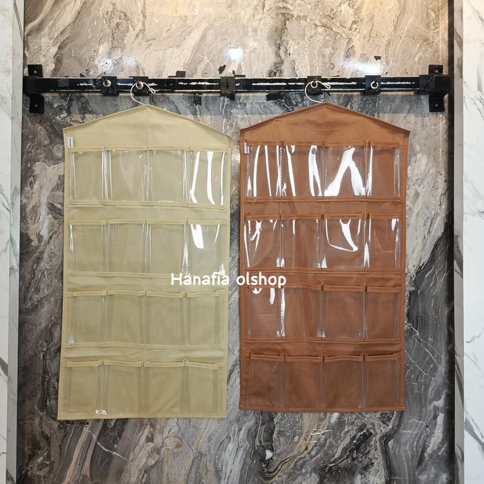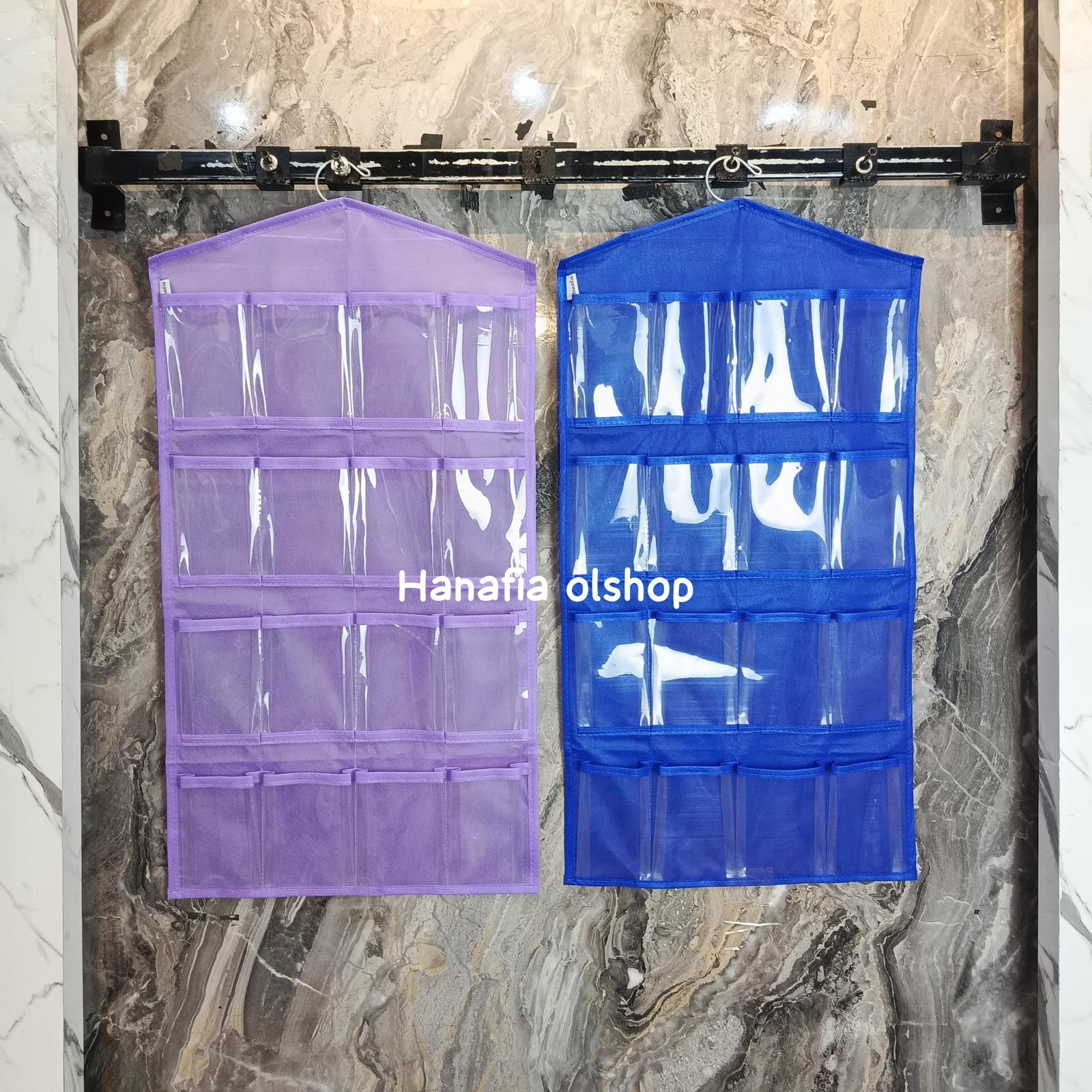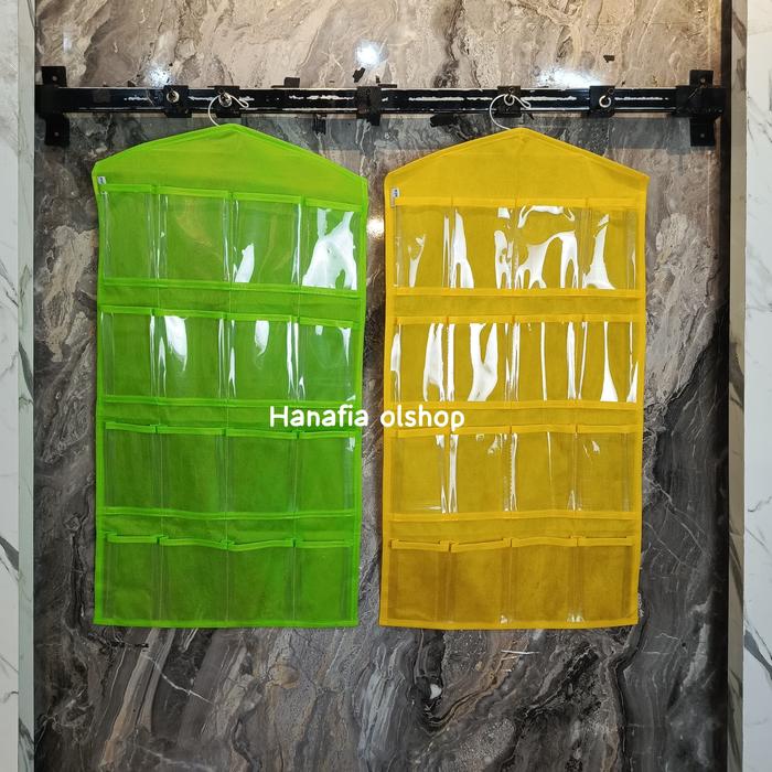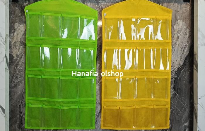 Rak gantung ini dirancang khusus untuk mengorganisir barang-barang kecil Anda dengan sempurna. Dengan 16 kantong berukuran besar, rak ini sangat cocok untuk menyimpan berbagai koleksi underwear, bra, kaos kaki, hijab, dan aksesori lainnya. Desainnya yang simpel dan dilengkapi gantungan (hook) memudahkan Anda untuk menggantungnya di lemari, pintu, atau dinding, menghemat ruang secara signifikan.