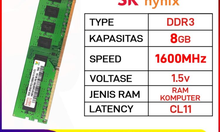 - PC12800: Nama lain untuk RAM DDR3-1600, menunjukan bandwidth maksimum teoritis sebesar 12800 MB/s.