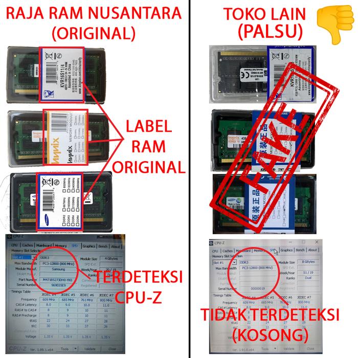 - 100% ORIGINAL: Dipastikan menggunakan chip asli Hynix dan terdeteksi lengkap di software CPU-Z.