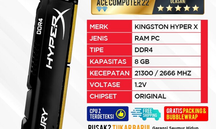 Ace Computer menyediakan RAM Kingston HyperX Gaming DDR4 8GB berkinerja tinggi untuk upgrade PC Anda. Dengan kecepatan 2666MHz dan latency CL19, RAM ini dirancang untuk meningkatkan performa gaming dan produktivitas.