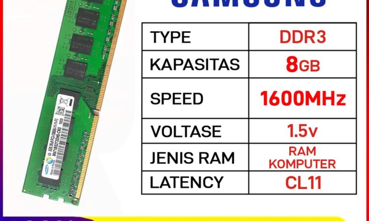 Pastikan kinerja komputer Anda maksimal dengan RAM PC Samsung DDR3 8GB 1600MHz yang 100% original. Dibuat dengan chip Samsung berkualitas tinggi, RAM ini menjawab kebutuhan upgrade dengan kecepatan tinggi dan stabilitas terjamin. Cocok untuk meningkatkan multitasking, gaming, dan produktivitas kerja.
