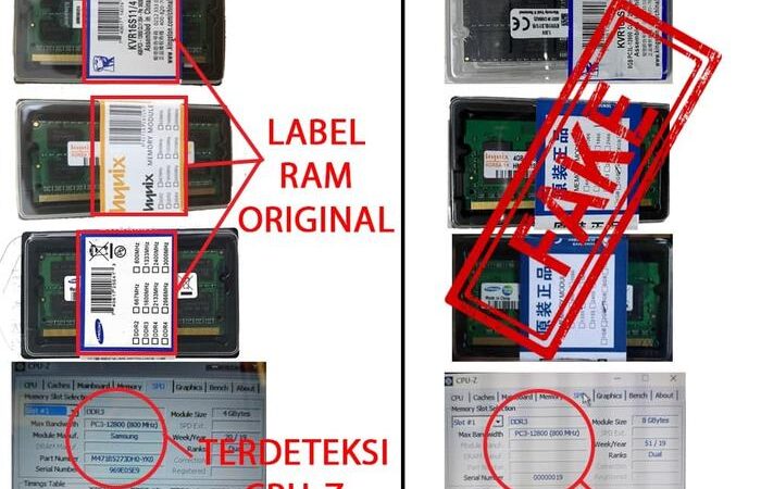 Unduh aplikasi CPU-Z dan periksa tab “Memory” dan “SPD”. Pastikan Module Manufacturer, Part Number, dan semua informasi terdeteksi dengan benar dan sesuai dengan label pada fisik RAM.