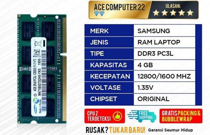 | Kompatibilitas Tinggi | Cocok untuk semua motherboard DDR3L/PC3L, speed 1600MHz, voltage 1.35V. |