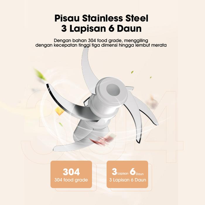 | Material Pisau | Stainless Steel 3 Tingkat, 6 Mata Pisau |