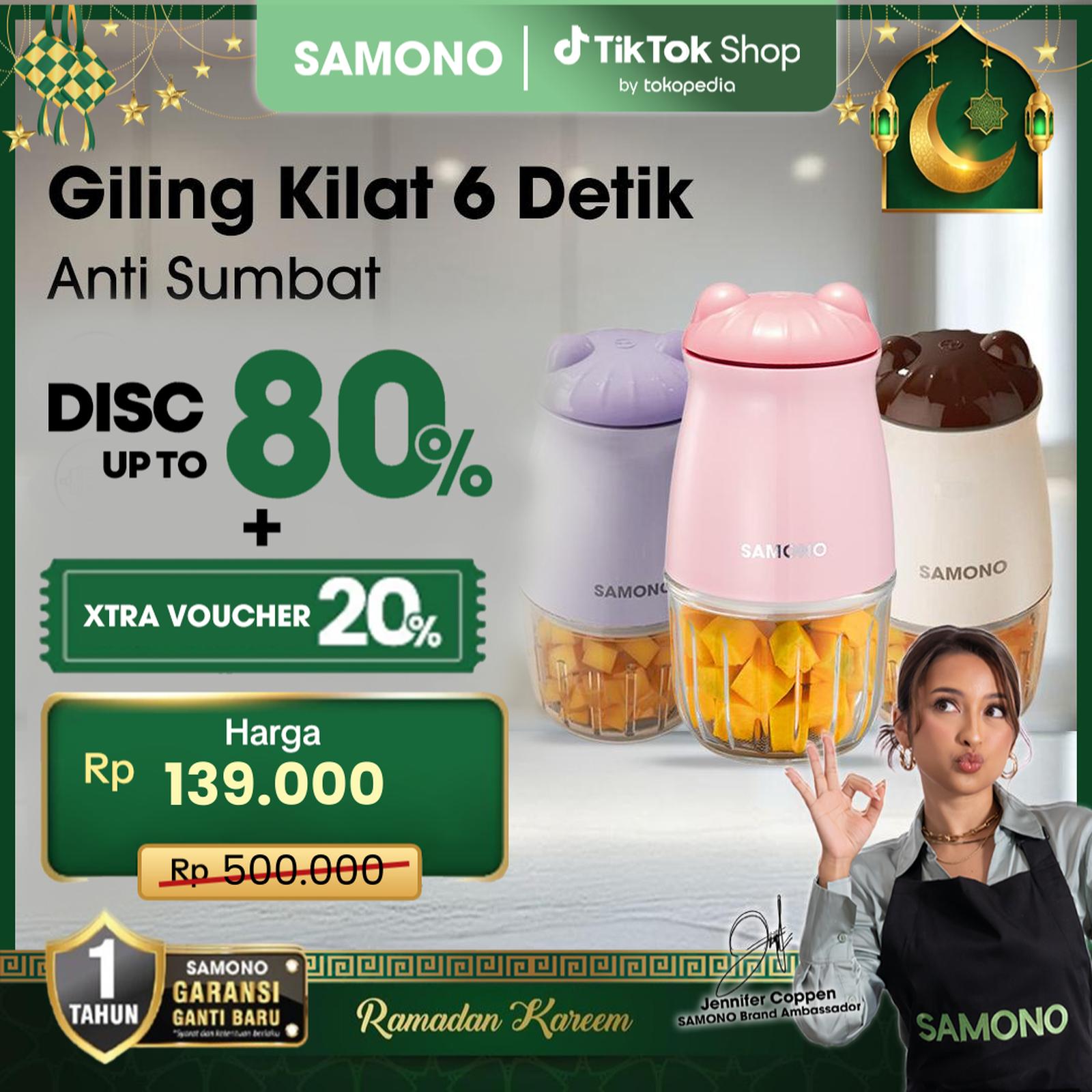 Wujudkan masakan lezat dan sehat untuk keluarga di bulan Ramadan dengan Samono Food Processor. Alat multifungsi portabel ini didesain khusus untuk memudahkan Anda menghaluskan daging, sayuran, bumbu, hingga membuat MPASI dengan konsistensi sempurna. Dilengkapi dengan 6 mata pisau berlapis stainless steel 3 tingkat dan motor berdaya 200 Watt, setiap bahan dihaluskan dengan cepat dan merata hingga hasil yang diinginkan.