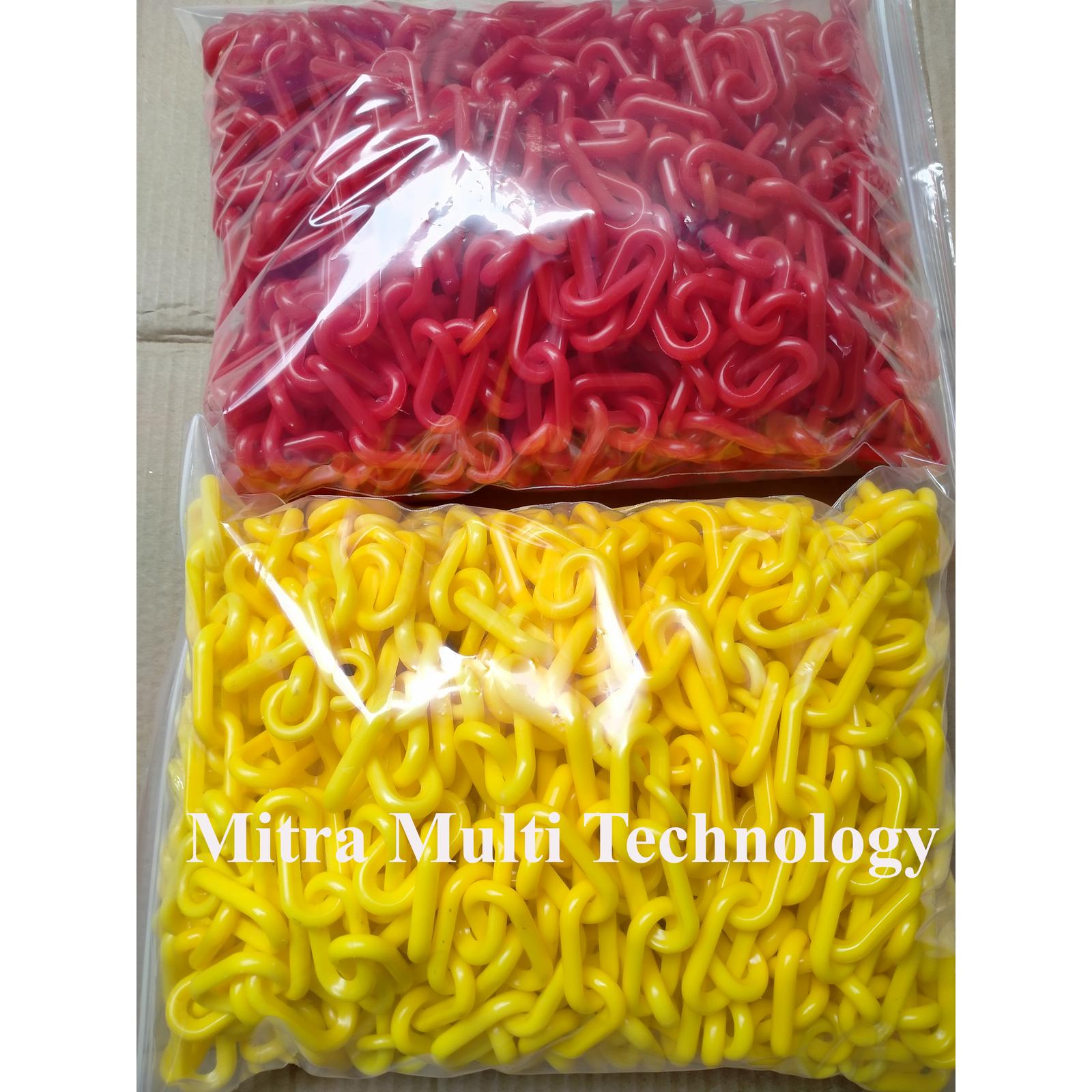 • Kunci S: Sebuah pengait berbentuk seperti huruf “S” yang berfungsi sebagai penyambung dan pembuka rantai. Memudahkan pengaturan panjang rantai sesuai kebutuhan dan memungkinkan pembuatan pola pembatasan yang fleksibel.