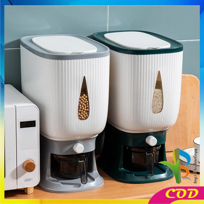 | Keunggulan | – Kedap udara, mencegah kontaminasi kutu, serangga, debu, dan bakteri – Kapasitas 10 kg – Penutup membuka 90° untuk akses mudah – Tahan suhu tinggi dan kelembapan – Dilengkapi gelas ukur/takar |