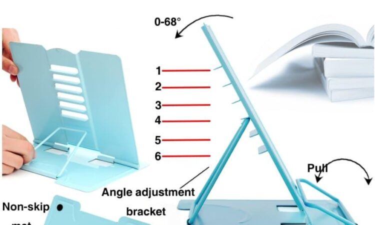 | Kemiringan Adjustable | 6 tingkat kemiringan (48°, 53°, 58°, 63°, 67°, 72°) untuk posisi baca ideal. |