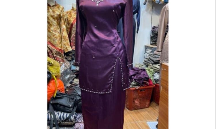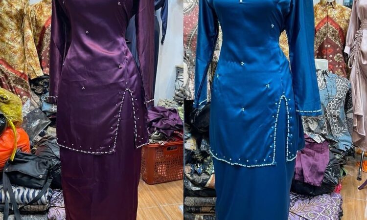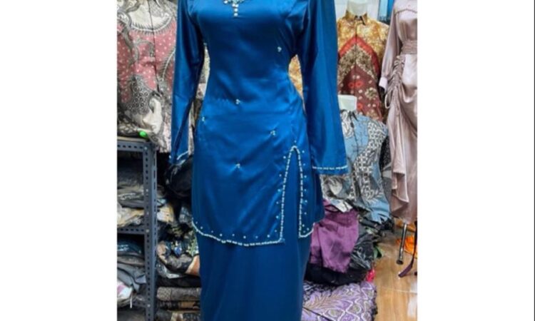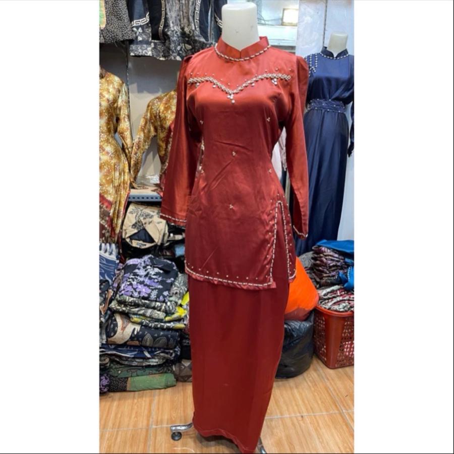 | Detail Desain | Full payet mutiara (kerajinan tangan) di leher, resleting belakang 50cm |