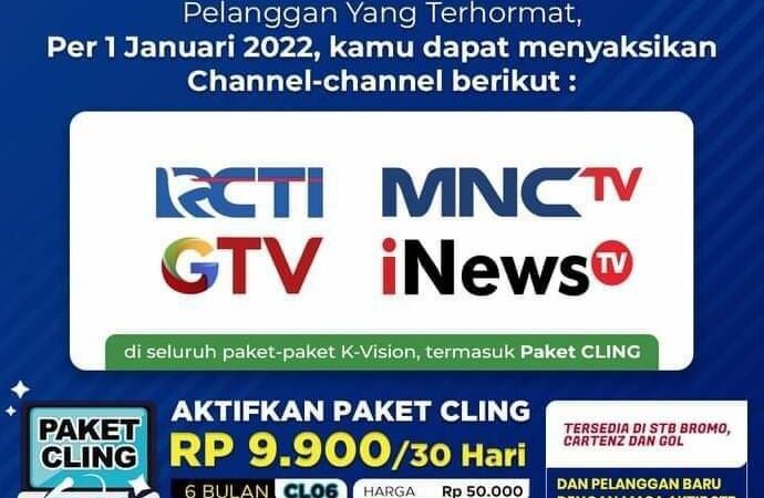 - Paket Cling/Juara/Joss/Jowo: Nama-nama paket berlangganan channel dari Kvision yang berisi kumpulan channel tertentu dengan durasi waktu aktif yang berbeda-beda.