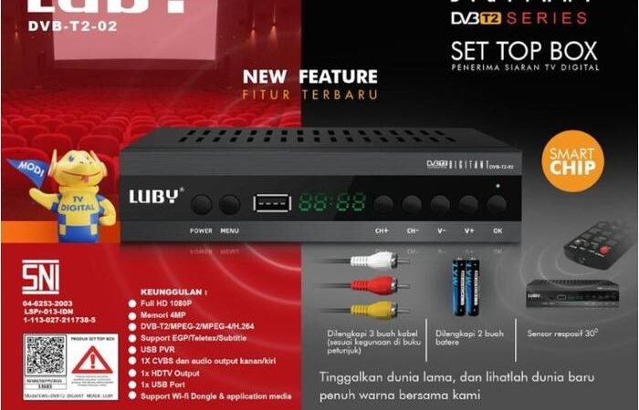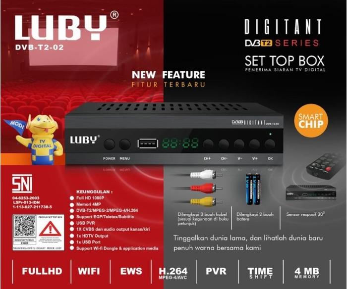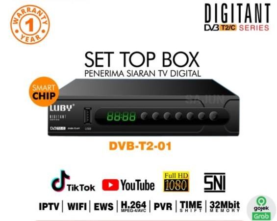 Siap sambut era TV digital dengan Receiver Luby DVB-T2! Nikmati siaran televisi digital berkualitas Full HD (1080p) dengan mudah dan terjangkau. Garansi resmi 1 tahun memberikan jaminan kepuasan untuk Anda.