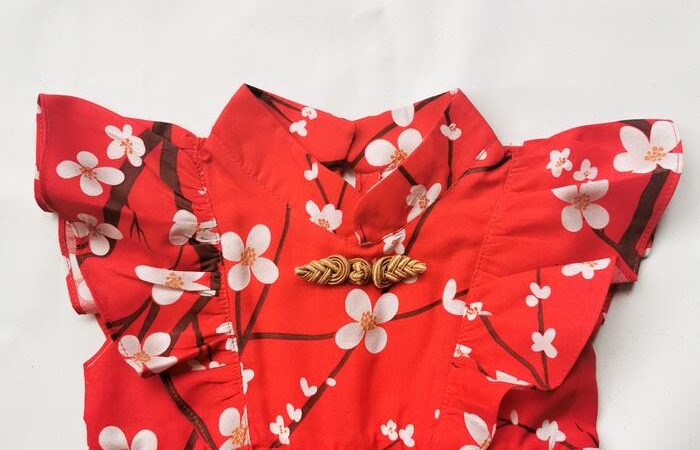 - Cheongsam/Qipao: Pakaian tradisional Tionghoa dengan potongan satu potong, kerah tinggi, dan kancing di bagian bahu.