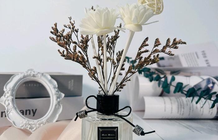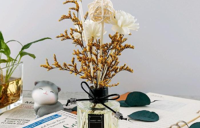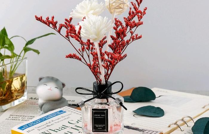 - Reed Diffuser: Alat pengharum ruangan yang menggunakan stik rotan untuk menyerap dan menguapkan minyak aromaterapi secara alami tanpa listrik atau api.