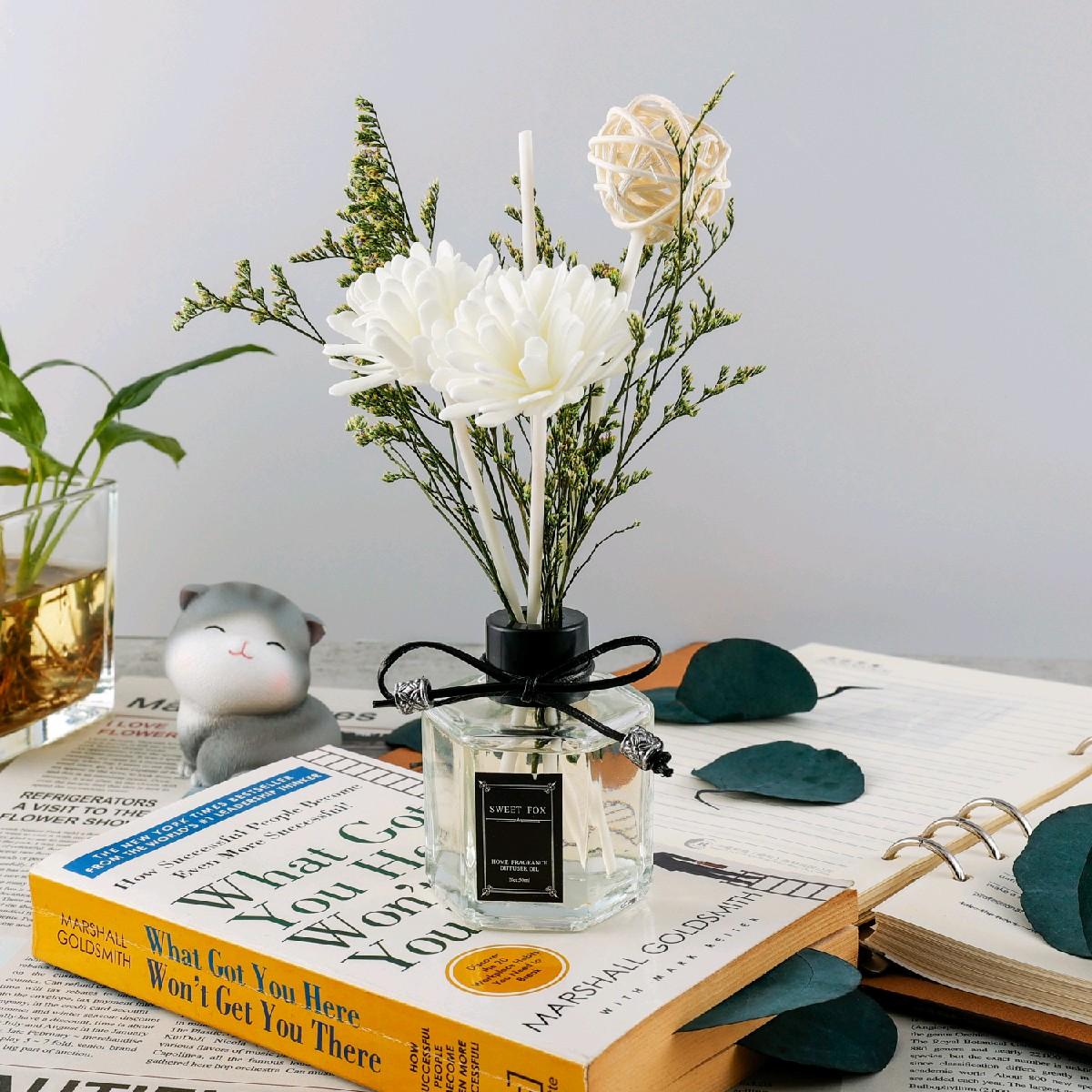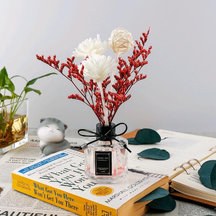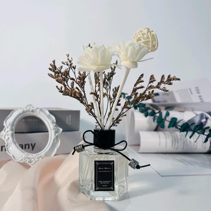 - Varian “R.Diffuser” sudah termasuk reed diffuser dan hiasan bunga.