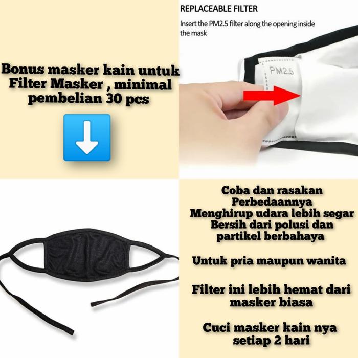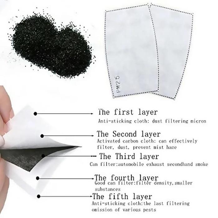 Tingkatkan proteksi masker Anda dengan Refill Filter PM 2.5 Carbon Active 5 Lapis yang dirancang untuk menyaring partikel halus, polutan, dan bakteri. Cocok digunakan untuk berbagai jenis masker, termasuk N95, KN95, masker kain dengan slot kantong, serta masker scuba dan Pitta Mask (dengan double tape).
