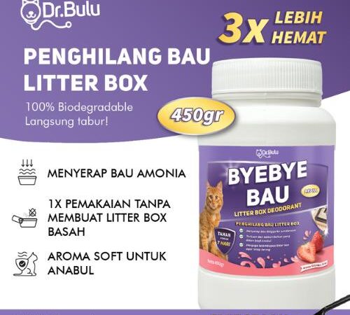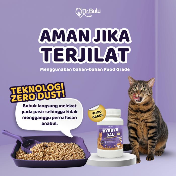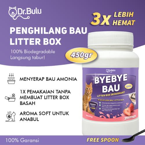 ByeBye Bau by Dr.Bulu adalah deodoran litter box inovatif yang tidak hanya menutupi bau, tetapi juga menyerap bau tidak sedap (amonia) hingga ke sumbernya hingga 7 hari. Produk ini dirancang khusus untuk menjaga kebersihan dan kesegaran litter box anabul Anda lebih lama.