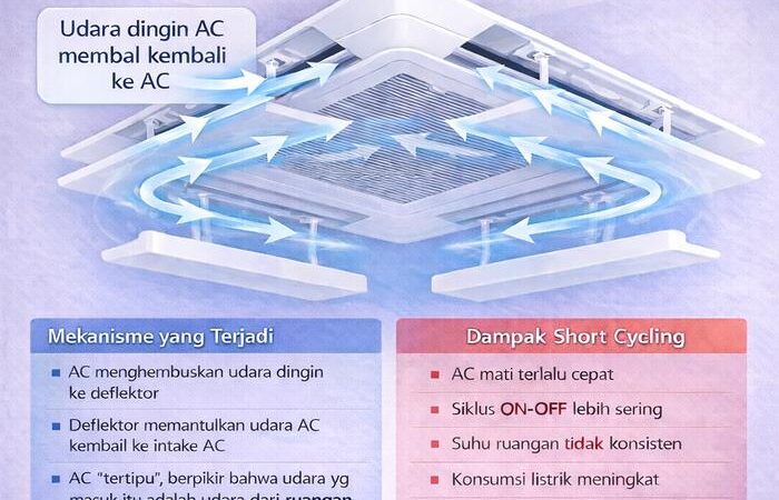 - AC Cassette: Jenis unit AC yang biasanya dipasang di plafon (langit-langit) ruangan. Unit ini menyebarkan udara melalui empat sisinya.