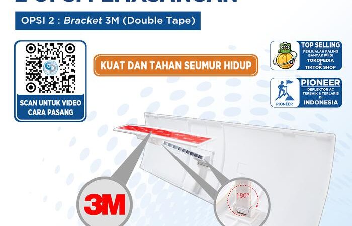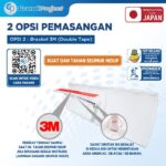 2 OPSI PEMASANGANPaket sudah termasuk jepitan kuat dan double tape 3M. Pilih metode yang paling sesuai dengan kebutuhan Anda.
