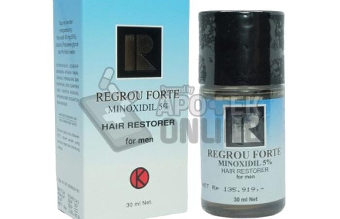 | Deskripsi | Regrou Forte Solution mengandung Minoxidil 5% untuk mengatasi alopecia androgenetika (kebotakan pola pria/wanita). Obat ini bekerja sebagai vasodilator, meningkatkan aliran darah ke folikel rambut dan merangsang pertumbuhan rambut di area kulit kepala yang menipis. Harus digunakan sesuai anjuran dokter. |